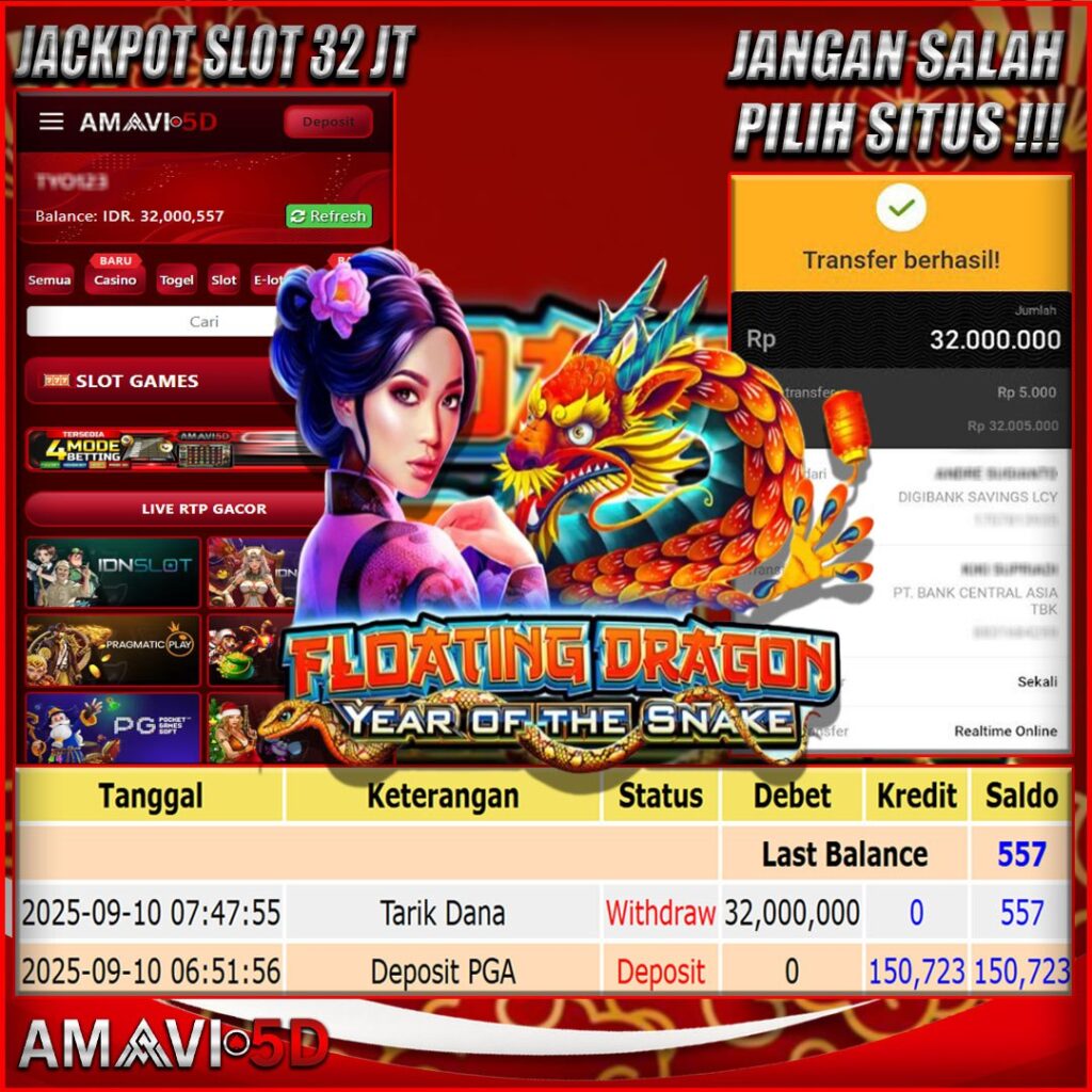 AMAVI5D JACKPOT SLOT FLOATING DRAGON YEAR OF THE SNAKE Rp.32.000.000,- LUNAS SELASA, 10 SEPTEMBER 2025