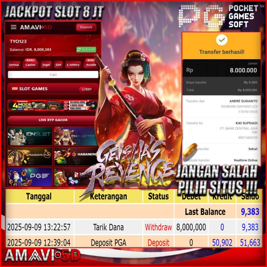 AMAVI5D JACKPOT SLOT GEISHA’ REVENGE Rp.8.000.000,- LUNAS SENIN, 09 SEPTEMBER 2025