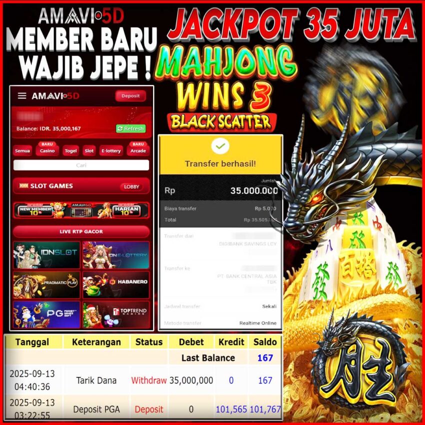 AMAVI5D JACKPOT SLOT MAHJONG WINS 3 BLACK SCATTER Rp.35.000.000,- LUNAS SABTU, 13 SEPTEMBER 2025