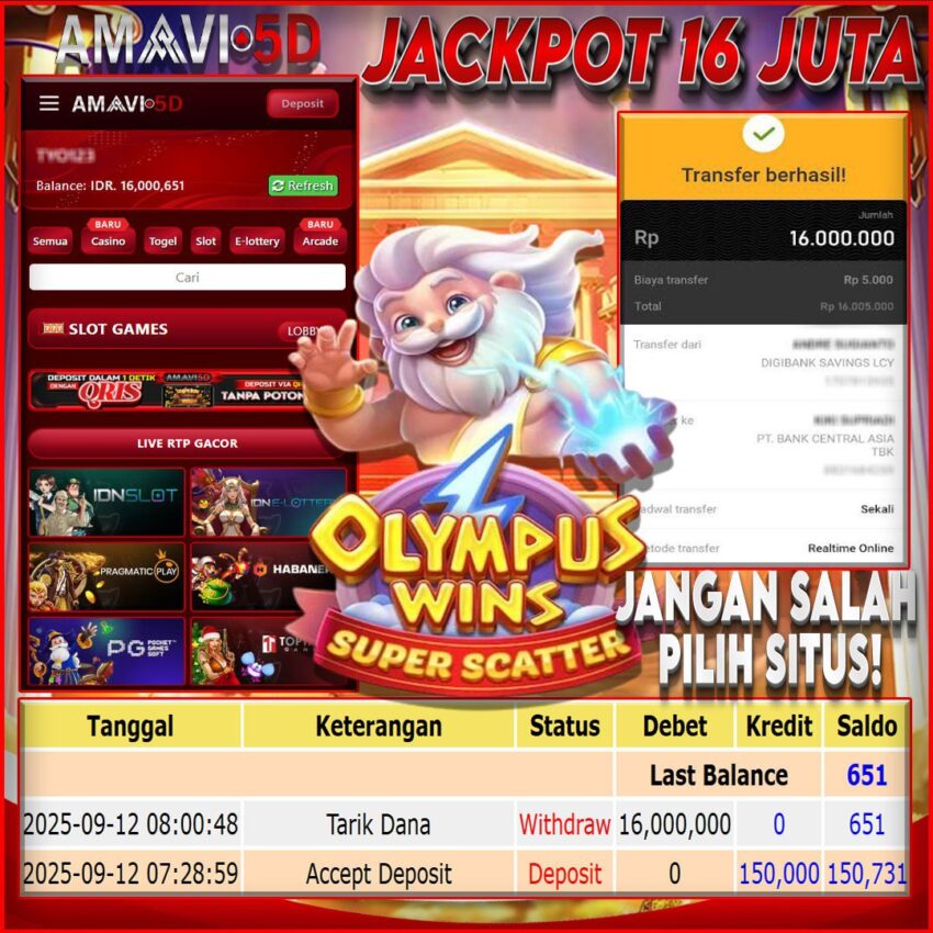 AMAVI5D JACKPOT SLOT OLYMPUS WINS SUPER SCATTERR Rp.16.000.000,- LUNAS JUMAT, 12 SEPTEMBER 2025