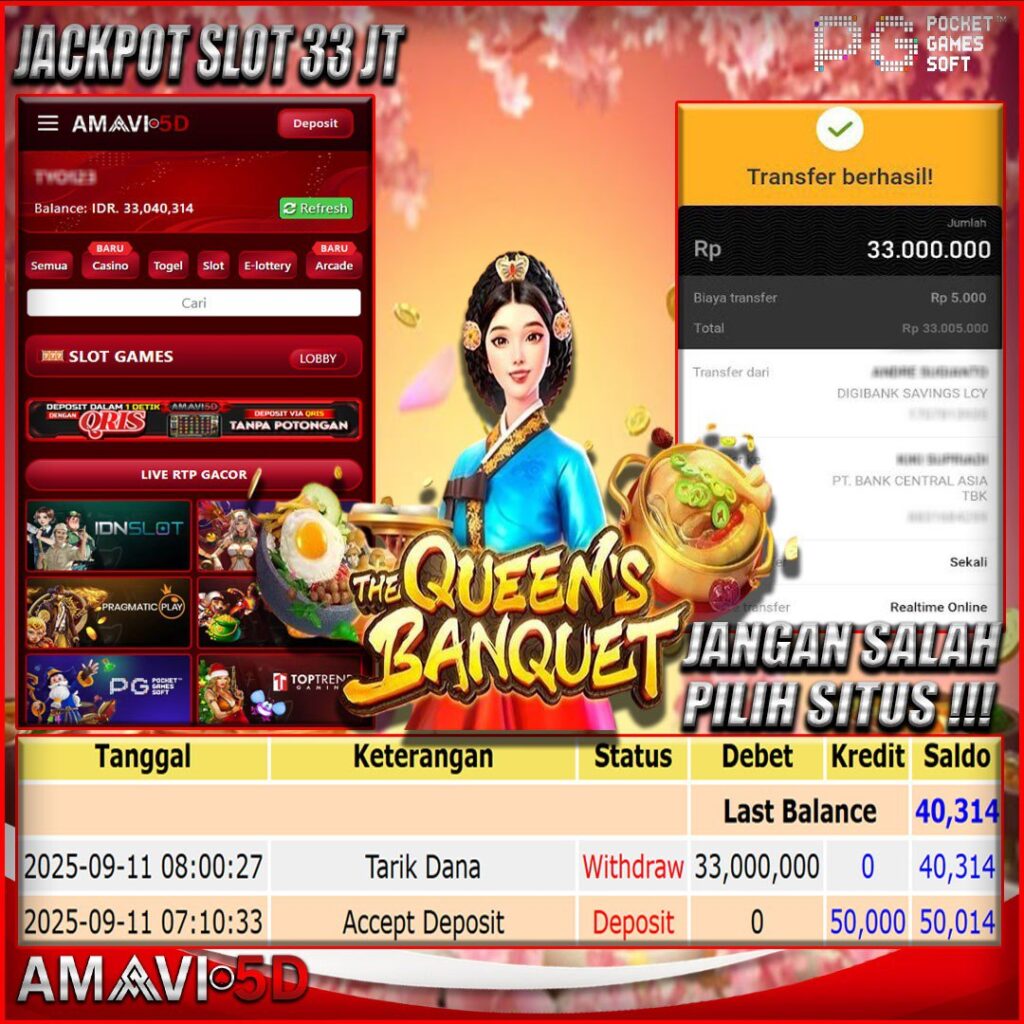 AMAVI5D JACKPOT SLOT THE QUEEN BANGQUET Rp.33.000.000,- LUNAS RABU, 11 SEPTEMBER 2025