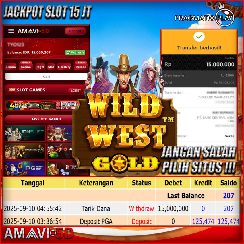 AMAVI5D JACKPOT SLOT WILD WEST GOLD Rp.15.000.000, – LUNAS SELASA, 10 SEPTEMBER 2025